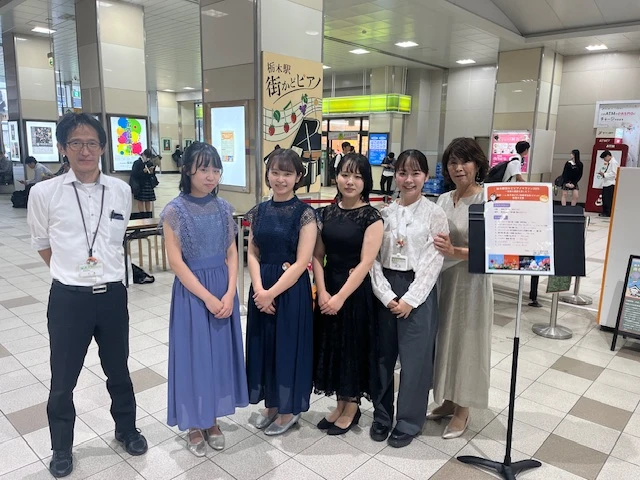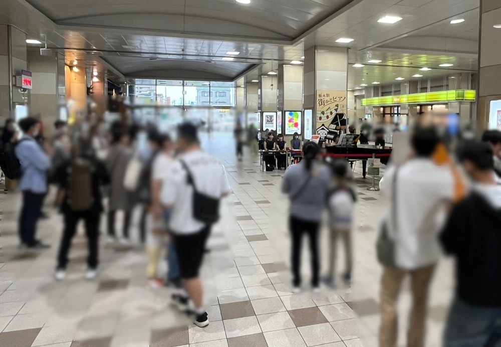 - 駅のピアノは、いつもの発表会やコンサートとはまったく違う空気でした。 グランドピアノが駅にあるなんて、地域ではとても珍しいこと。通りすがりの人が足を止めてくれて、ちょっとドキドキしましたが、すごく楽しかったです。 また機会があれば、ぜひ弾きに来たいです。